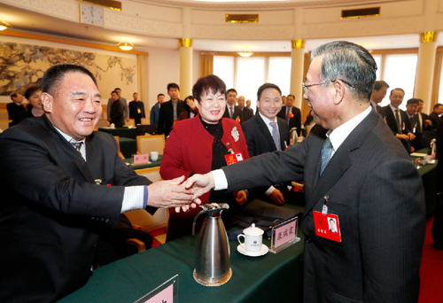 王光忠(左一)与山东省领导交流