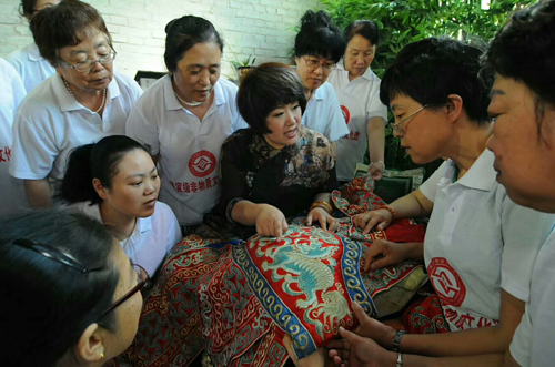 孙艳玲(中)解说渤海靺鞨绣工艺