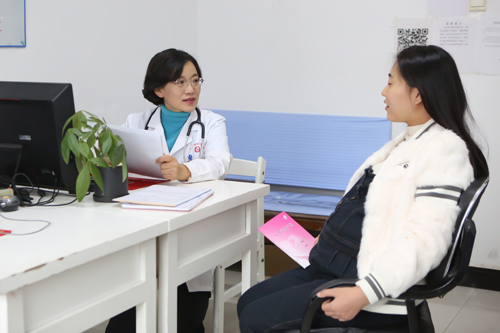 丰晓敏(左)为妊娠期糖尿病孕妇指导治疗