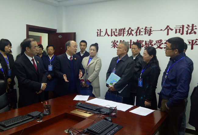 5天的时间里,代表们风尘仆仆行程千余公里,深入基层视察调研,先后听取了陕西省检察机关工作总体情况的汇报,参观了铜川市检察院法治教育基地、12309检察服务中心,在视频接访室与基层院现场连线,观看视频接待群众来访流程演示,详细了解检察院案件流转相关工作程序;视察了延安市检察院案管大厅、12309检察服务中心和党员之家,观看了公益诉讼工作专题片;视察了宝塔区检察院“捕诉合一”试点工作和“未检”工作,观摩了远程提审系统操控;视察了富平县检察院12309检察服务中心,参观了该院的检察党建活动室和检察文化墙。