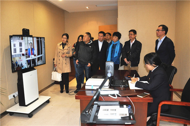 在吴江区检察院,代表委员和专家学者对信息化运用成效进行了“现场阅卷”。代表们先后走进远程视频提审室、真人比例远程汇报室,观看苏检掌上通、政法信息综合管理平台应用演示,参观12309检察服务中心,在这些信息应用功能区让代表委员们近距离感受到“智慧检务”神器所带来的高效便捷。