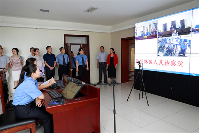 代表在黑龙江省大庆市让胡路区检察院观看远程庭审
