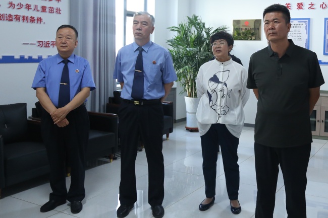 张继新(右一)代表与杭锦后旗检察院干警共同参观观护中心。